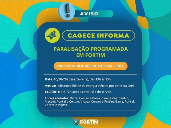 PARALISAÇÃO PROGRAMADA EM FORTIM INDISPONIBILIDADE DE ENERGIA - ENEL Data: 10/10/2025...